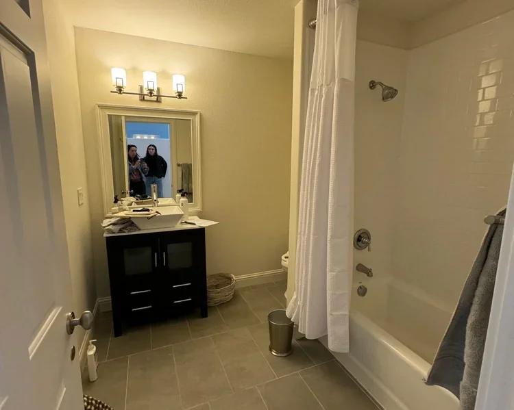 What was once a dated and dark bath is now a calm retreat filled with natural light and modern warmth. We replaced heavy checkered tiles with soft neutrals, added a freestanding tub, and layered textures that invite you to slow down.