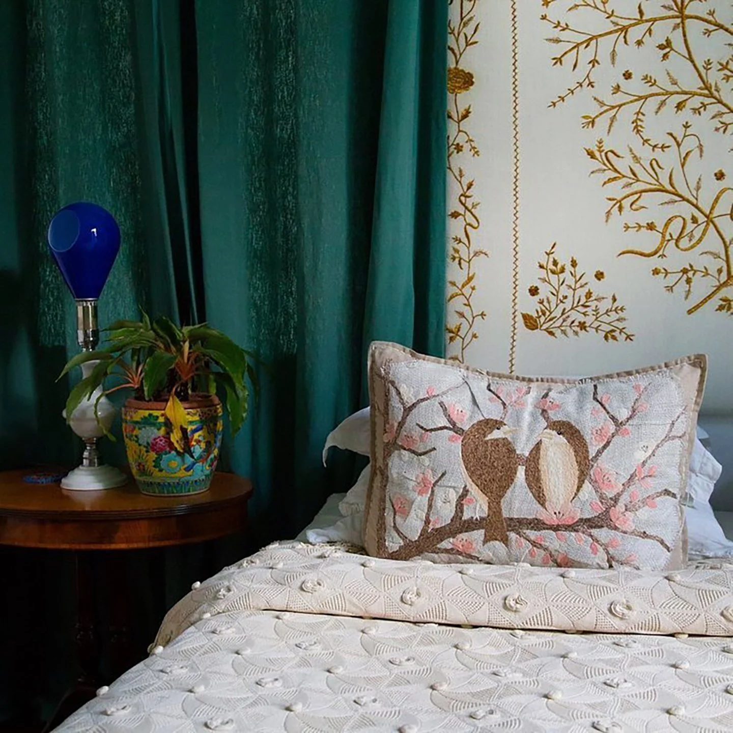 Embroidered Headboard and Cushion by Bokja